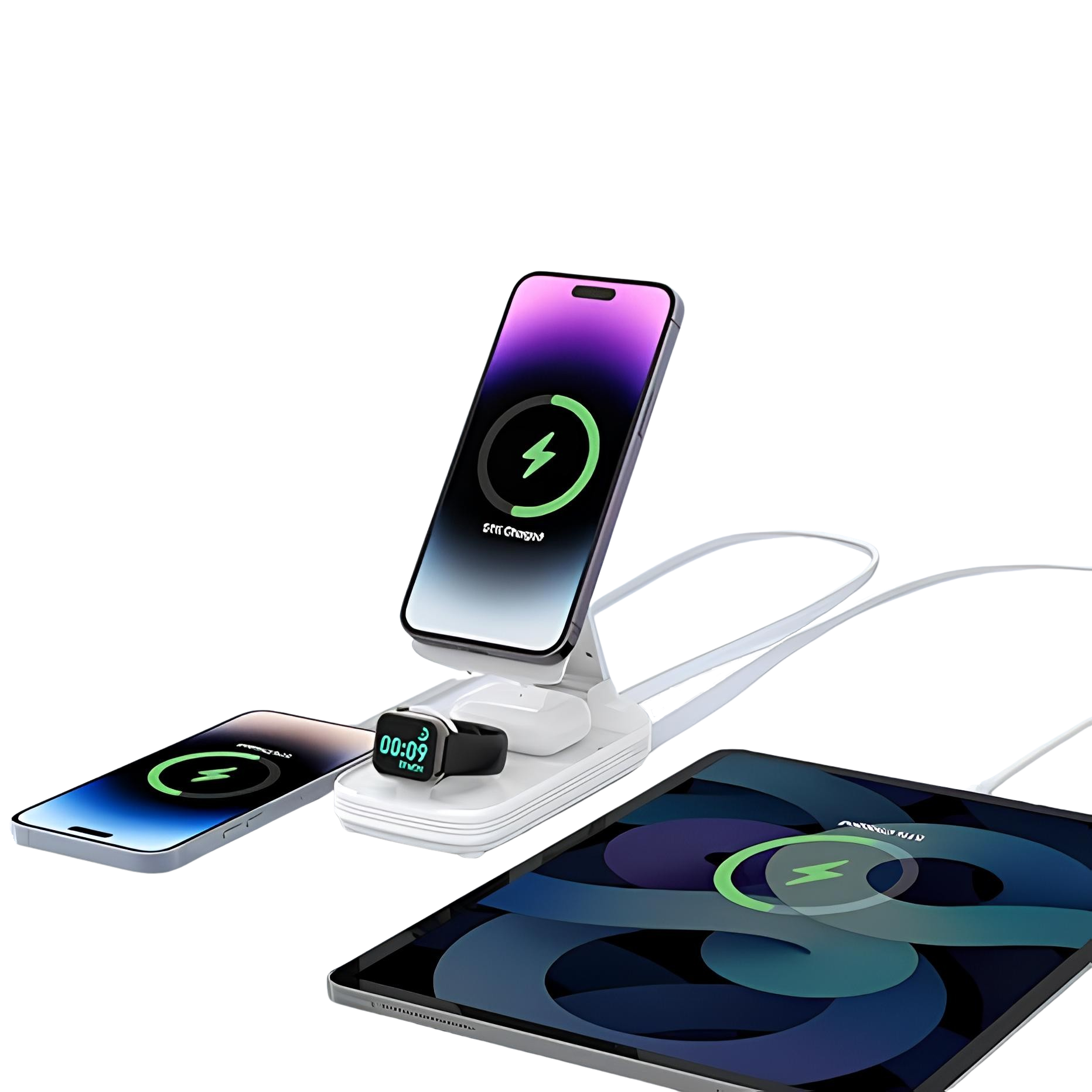 【iPhone Fast Charging Station】- Wireless charging station for Apple devices: iPhone 15/14/13/12 all series (Supports all wireless charging phones), iWatch all series (Apple Watch original only), and AirPods 2/3/Pro/Pro 2 (supports all wireless charging earbuds). It is recommended to charge with a magnetic ring for a better experience (complimentary magnetic ring included).