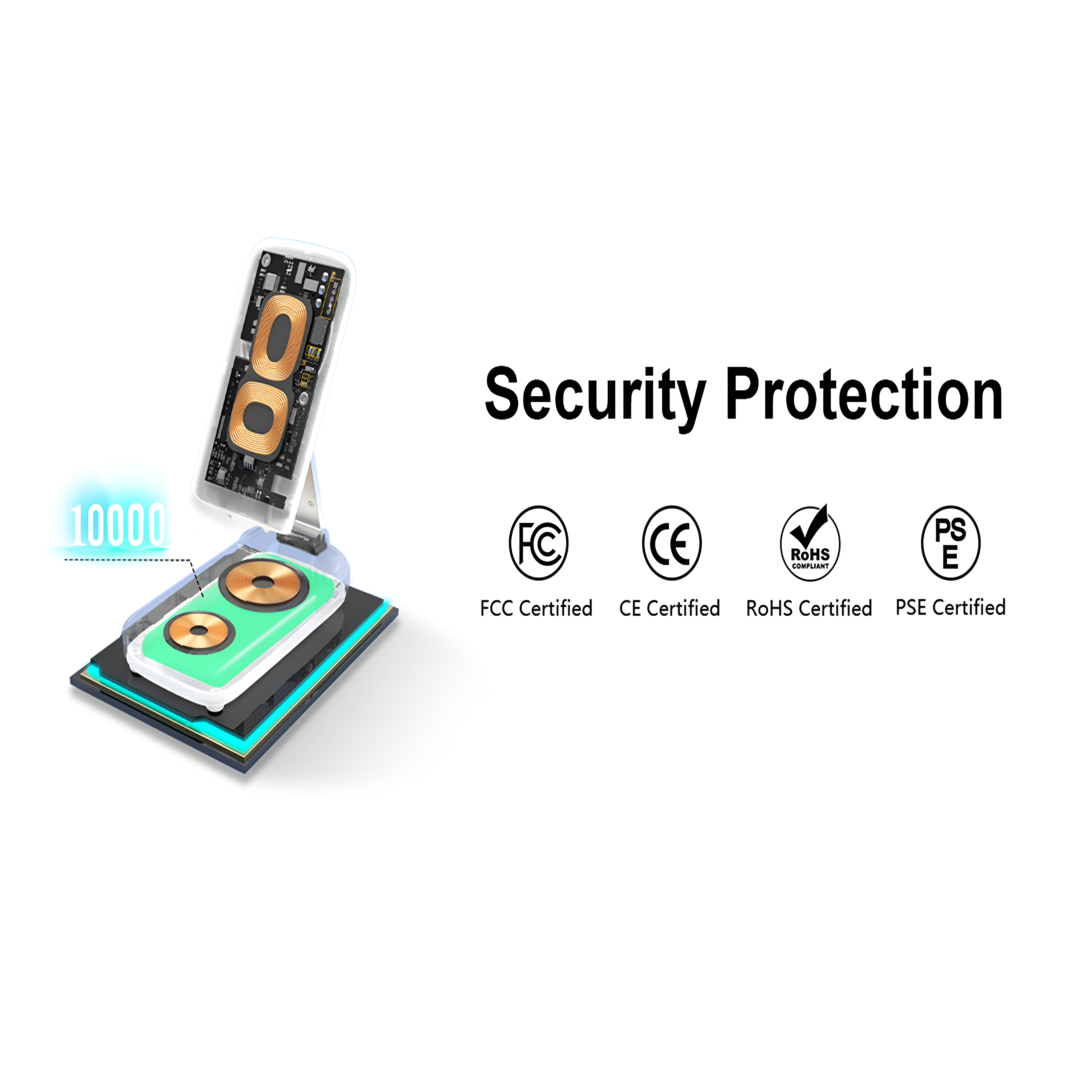 【Multi-Factor Authentication Security Protection】- The wireless charging station for travel with 10,000mAh has passed FCC, CE, ROHS, PSE, and CCC certifications. The chips used are also high-quality, providing over-current protection, over-voltage protection, over-temperature protection, and foreign object detection functions, effectively preventing damage to the battery and ensuring safe charging of the device.